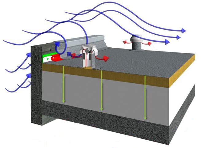 Vindkraften skaber en vakuum-effekt, der suger membranen fast på tagstrukturen. Jo stærkere vinden er, jo bedre fungerer systemet.